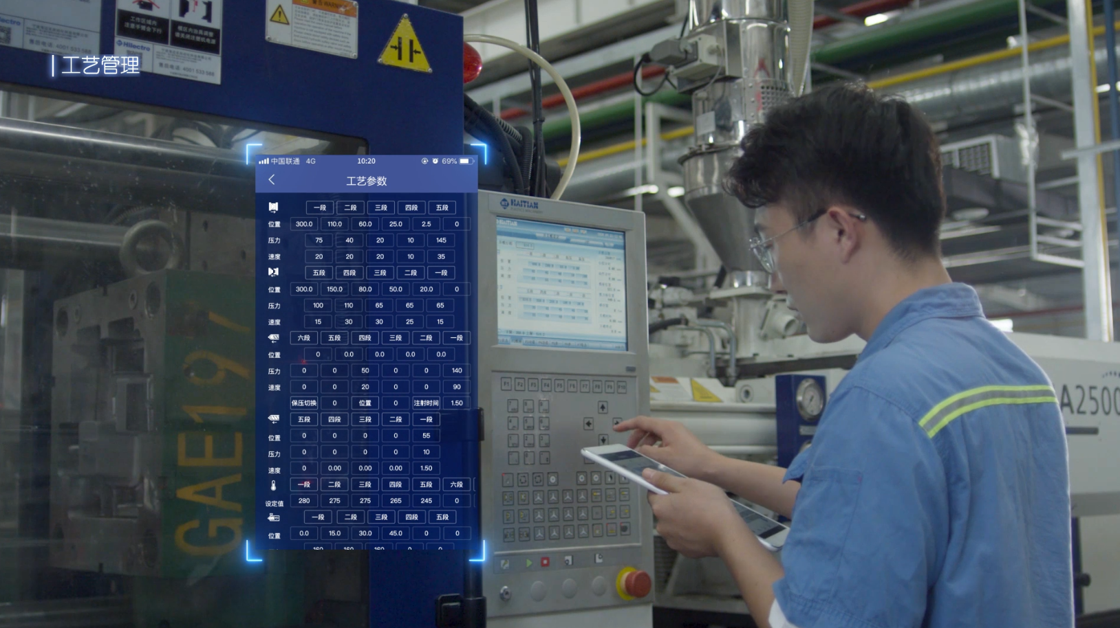 数字化生产车间中,手机通过小诸葛化身参数辞典,所有机器的参数、修改记录都被实时、准确的录入到系统中,每位员工可以随时查看工艺参数,避免了人工+纸单记录的滞后性与不稳定性。